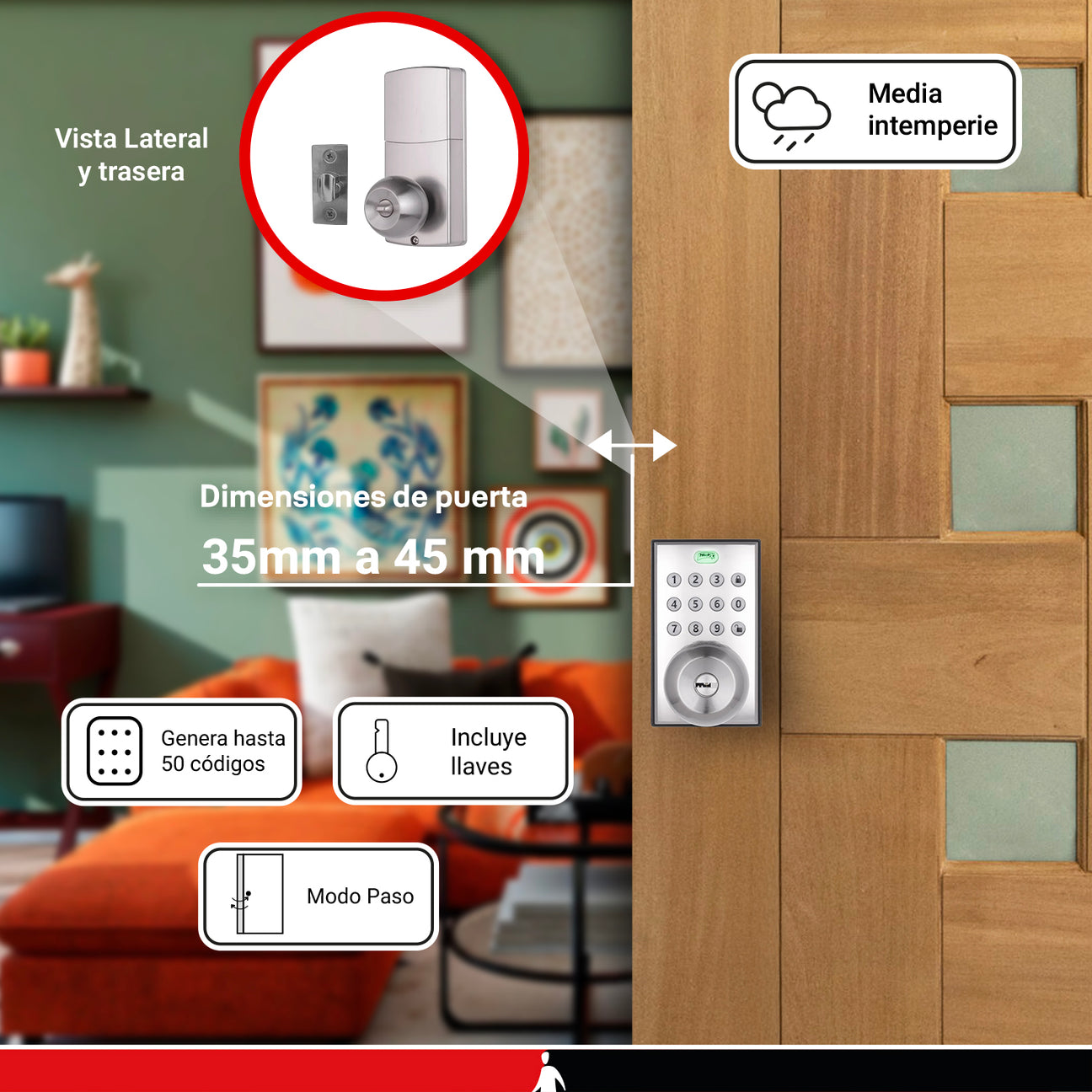 Disfruta de la seguridad y facilidad del diseño único de esta cerradura. Combina la resistencia de la cerradura de seguridad con el avance de la perilla digital. Su tecnología de seguridad avanzada garantiza la protección completa para su hogar o negocio.