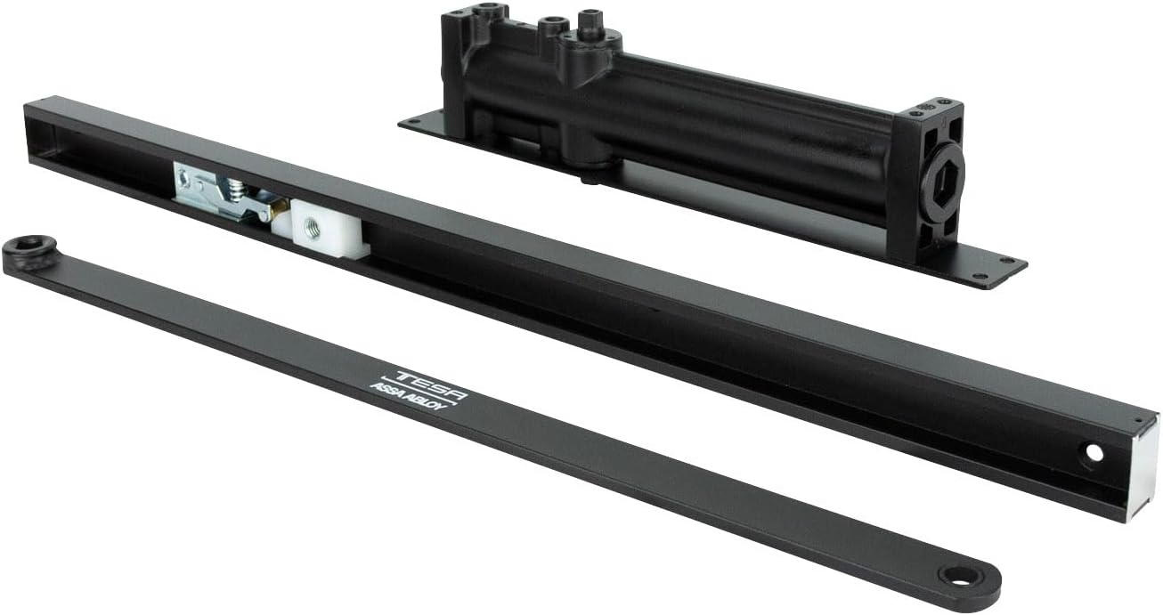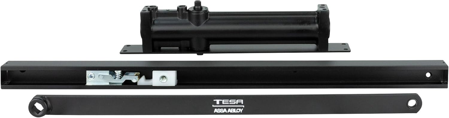 El cierrapuertas 1003 Hold Open de Tesa en color negro es un dispositivo de alta calidad diseñado para soportar un peso máximo de 85 kg. Su función de retención permite mantener la puerta abierta en la posición deseada, mientras que el sistema de control de retroceso asegura un cierre suave y seguro. Ideal para entornos comerciales y residenciales, este cierrapuertas combina durabilidad y funcionalidad, garantizando un uso prolongado y eficiente.