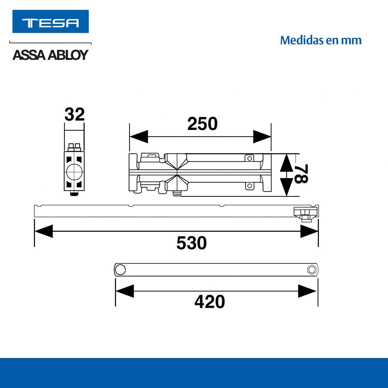 • Hecho en aleación de zinc y aluminio en cuerpo central de cierrapuerta.
