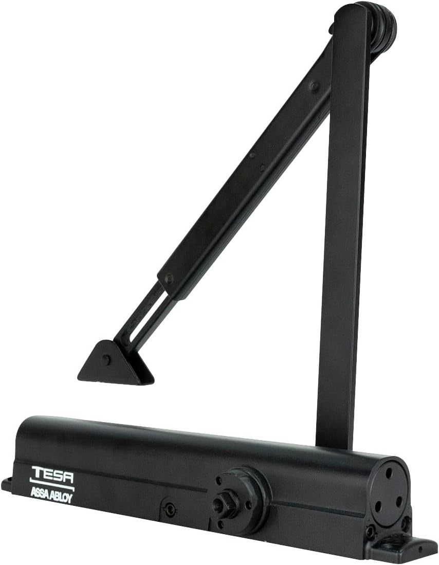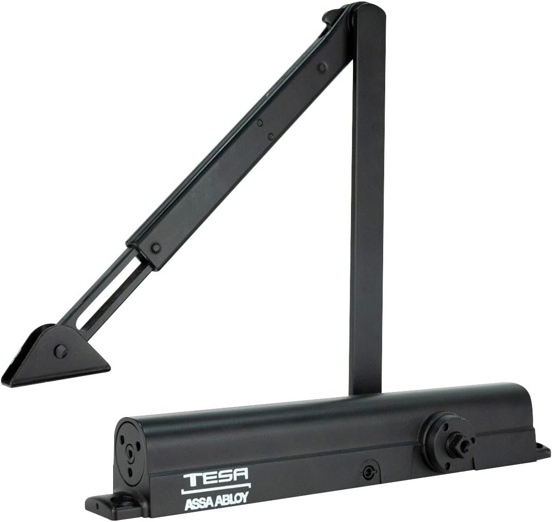 El cierrapuertas 8501 Hold Open de Tesa en color negro es un dispositivo de alta calidad diseñado para soportar un peso máximo de 150 kg. Su función de retención permite mantener la puerta abierta en la posición deseada, mientras que el sistema de control de retroceso asegura un cierre suave y seguro. Ideal para entornos comerciales y residenciales, este cierrapuertas combina durabilidad y funcionalidad, garantizando un uso prolongado y eficiente.