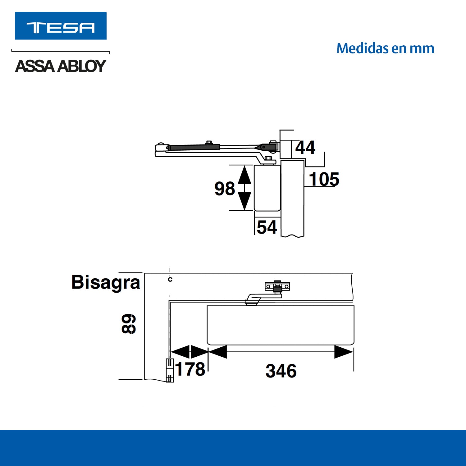 • Hecho en aleación de zinc y aluminio en cuerpo central de cierrapuerta.