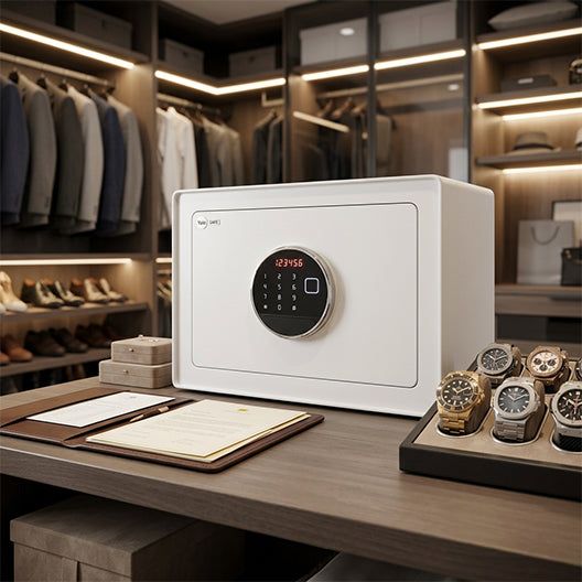 Descubre la caja fuerte biométrica Yale, elegante y segura digital en color blanco, equipada con un avanzado teclado electrónico. Este modelo ofrece un acceso rápido y seguro, permitiéndote abrirla con un simple toque. Si se te acaban las pilas, puedes cargarla desde el puerto auxiliar.